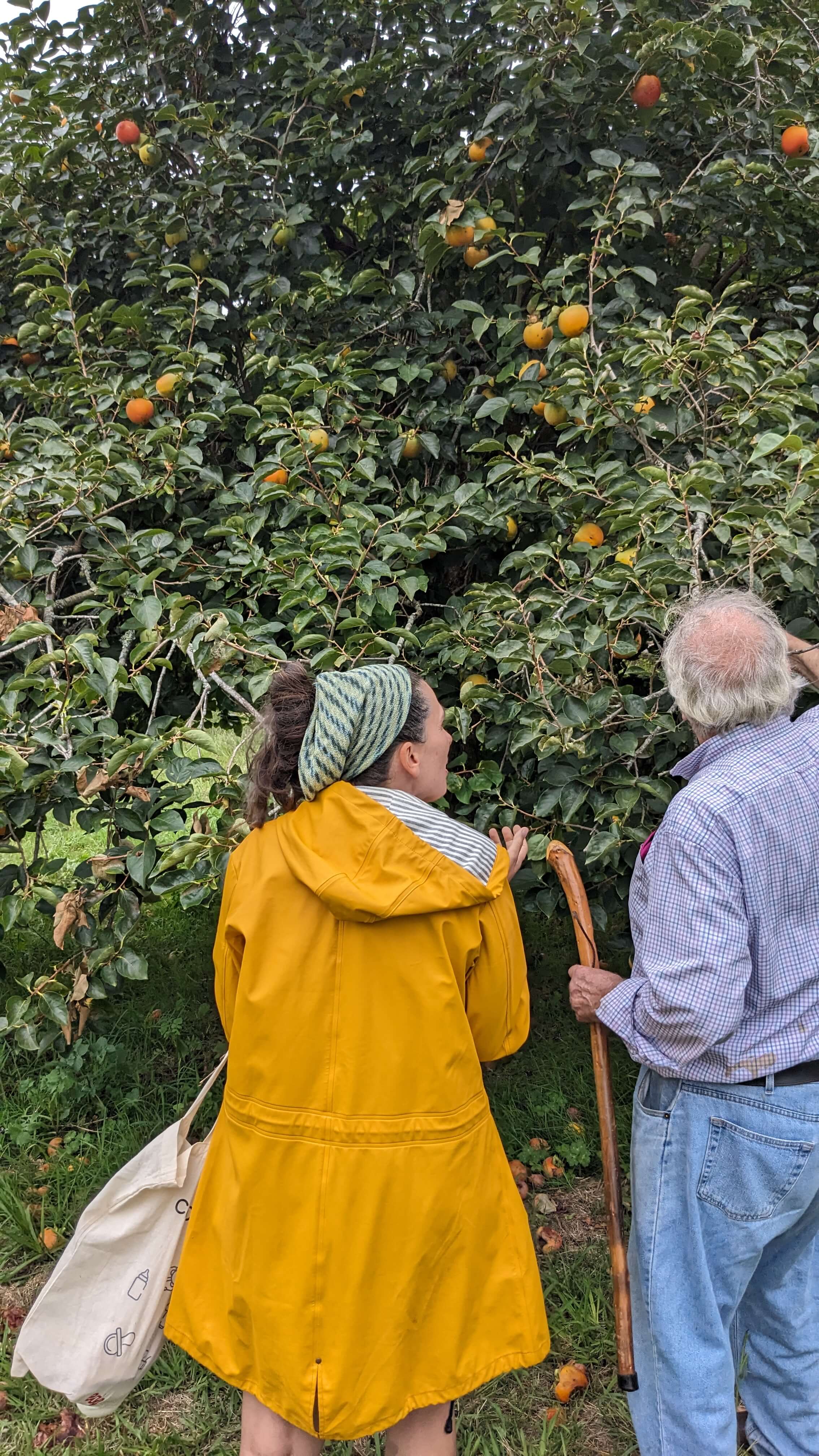 A estadia em Herbón vai revelar-se realmente especial. Enquanto os peregrinos vão chegando, o padre José de setenta e seis anos, o franciscano mais novo de entre os três que ainda vivem no mosteiro, leva-nos a apanhar caquis, ou seja diospiros. Encho o meu chapéu e distribuo a fruta pelos peregrinos que estão sentados à espera que se abram as portas, o que só acontecerá pelas três da tarde. É na espera que começamos a criar os laços que se irão fortalecer ao longo desse dia e da manhã seguinte.